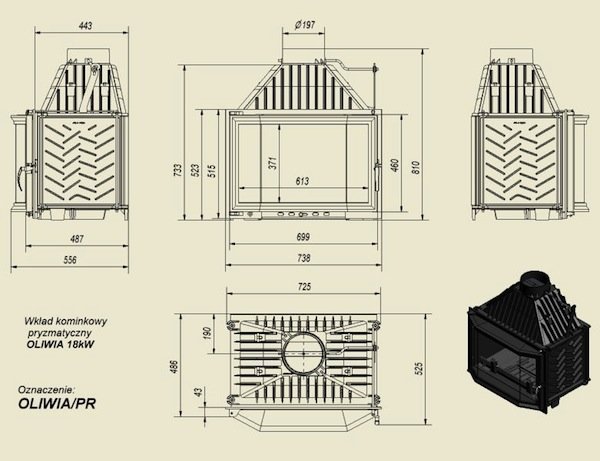 Топка OLIWIA/PR, призматическое стекло